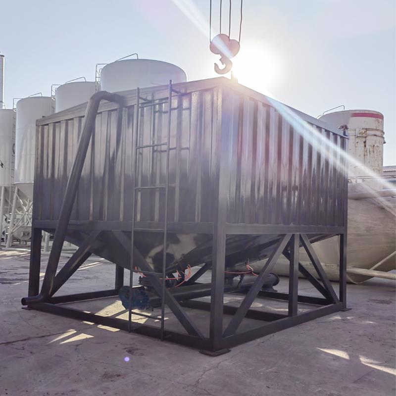 水泥倉一般采用散裝水泥輸送車將粉料吹氣送入倉內。整倉全部為鋼結構形成,焊接而成,頂部設有除塵及壓力安全閥。